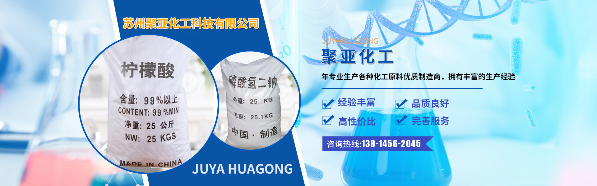 苏州聚亚化工科技有限公司位于长江三角洲腹地美丽富饶的江南古镇----平望镇,是一家专业生产各种化工原料的老企业,现成立有限责任公司。公司在原a有生产能力的基础上,引进国内葡萄糖酸钠 甲酸钙生产工艺技术和设备两条,形成年产葡萄糖酸钠7000吨,甲酸钙10000吨,产品质量稳定。广泛应用于混凝土外加剂 金属表面处理玻璃清洗 电镀 印染等行业。是葡萄糖酸钠、柠檬酸钠、工业级葡萄糖、工业级麦芽糊精、磷酸氢二钠等产品专业生产加工的公司,拥有完整、科学的质量管理体系。诚信是金,质量为本,是正兴人一贯的经营理念。顾客满意永远是我们的追求,我们热烈欢迎国内外客户来电咨询!